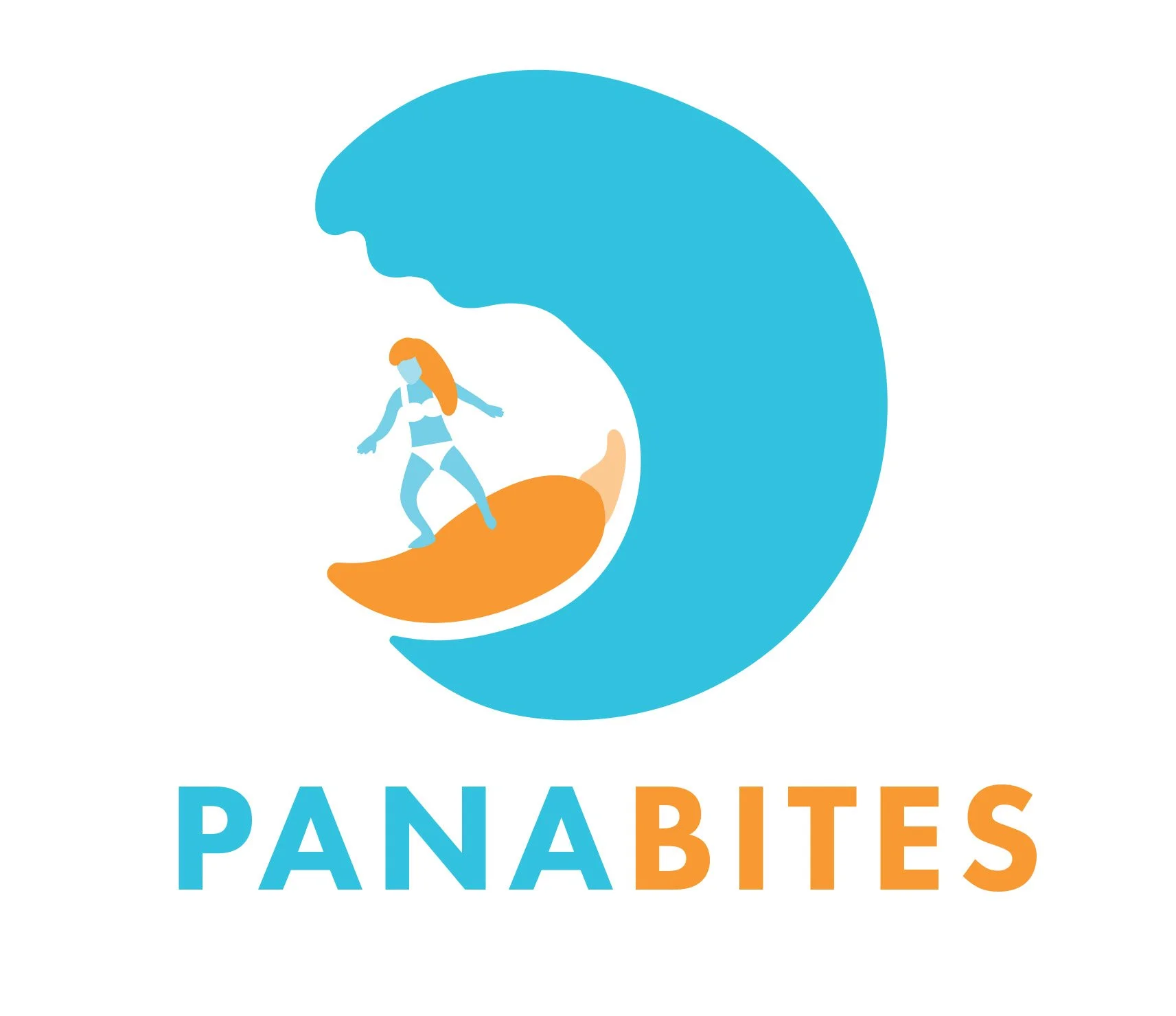 The PANABITES logo depicts an abstract woman surfing on a pepper along a wave with an S shaped curved. The PANABITES logo perfectly communicates the exciting tropical theme of the restaurant. A multicolored geometric wordmark sits below the woman surfing, further balancing the logo. PANABITES menu reflects the exciting and tropical theme of the restaurant by utilizing a wave-like gradient and the woman surfing along the footer.